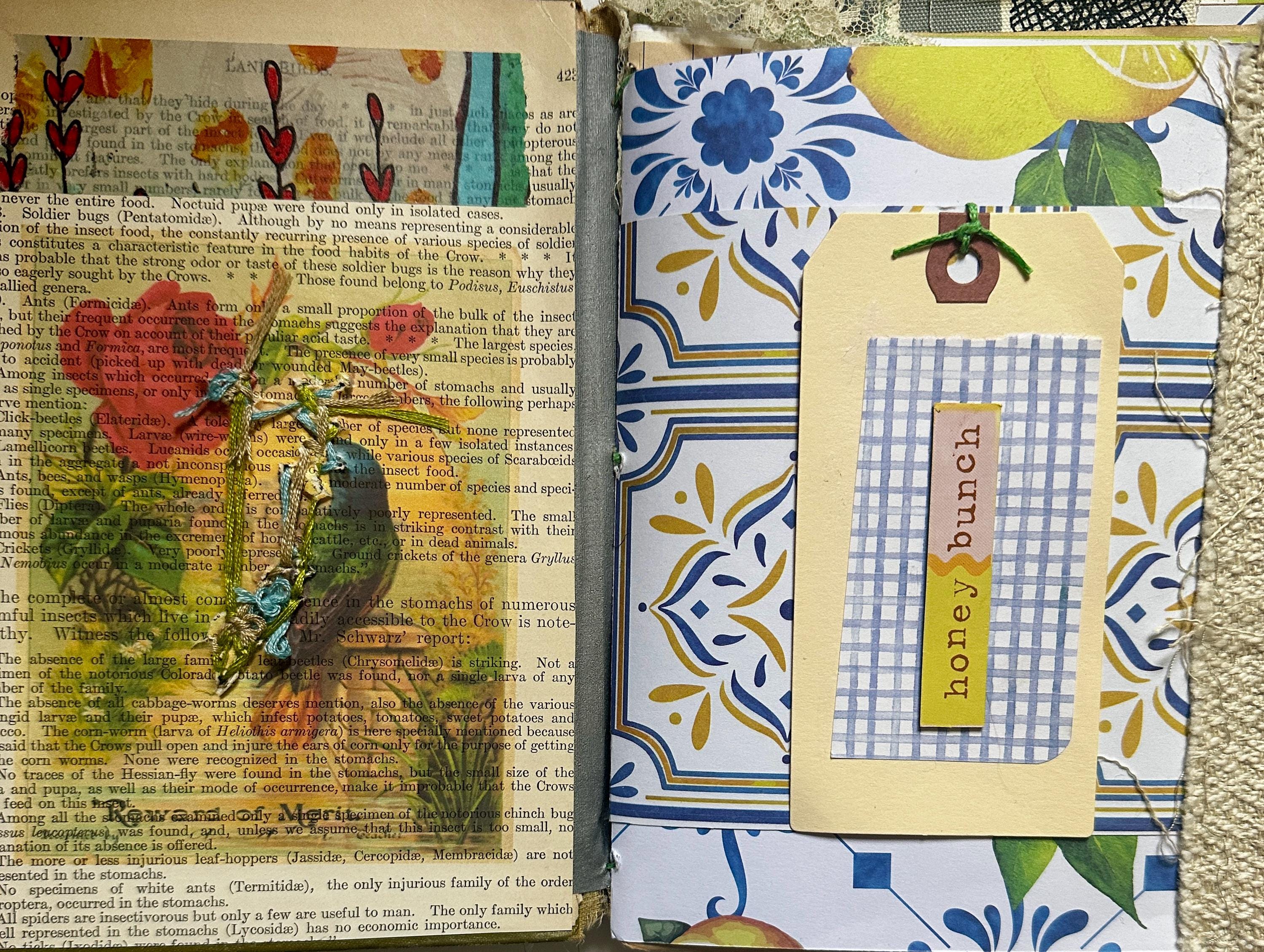 Vintage book turned handmade journal inspired by the garden. Full of whimsy, flora, and fauna, and so many delightful papers. Envelopes and tuck spots for journaling and art. No two are alike. Vintage and modern ephemera combine to give you the perfect place to create and dream.