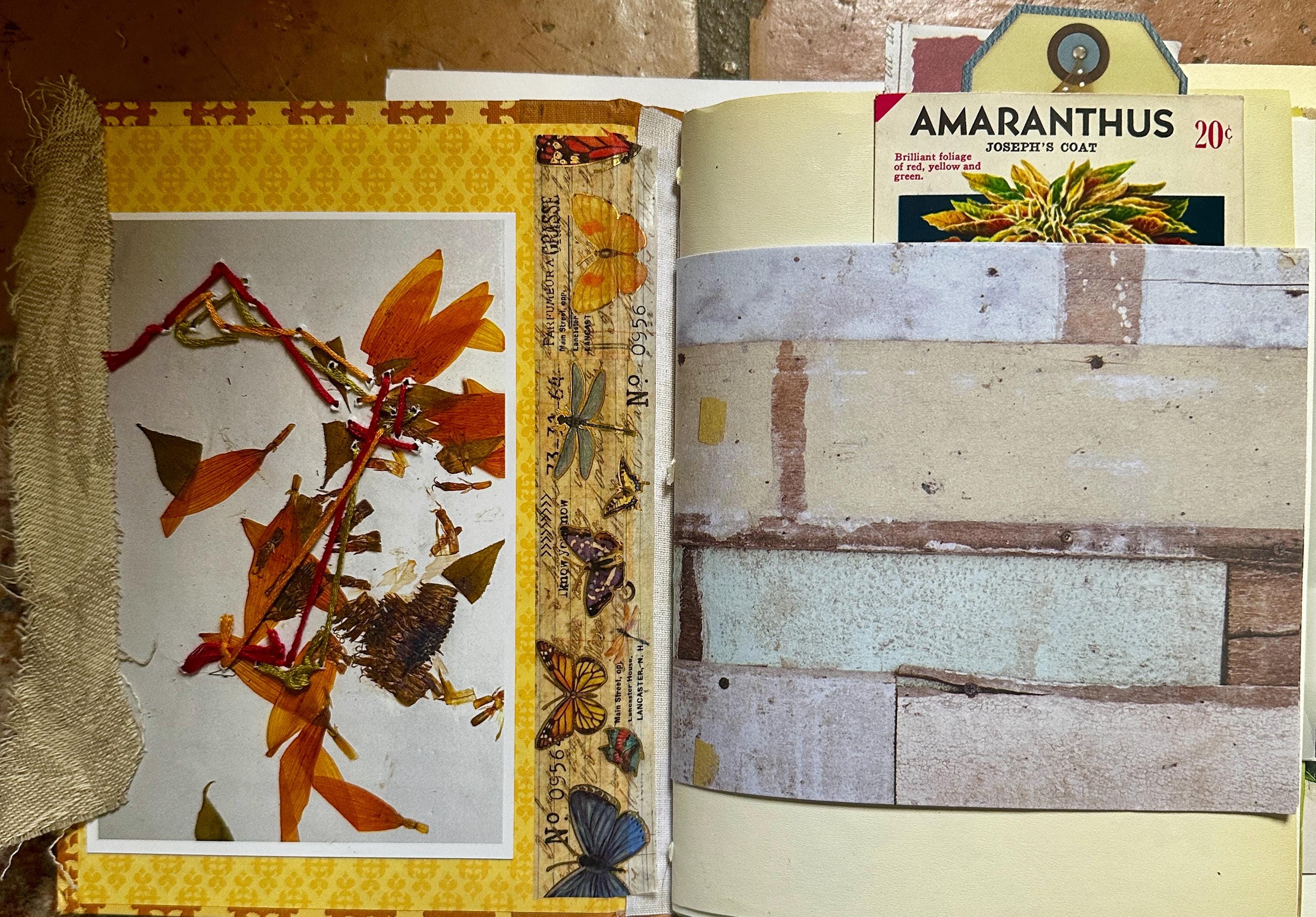 Vintage book turned handmade journal inspired by the garden. Full of whimsy, flora, and fauna, and so many delightful papers. Envelopes and tuck spots for journaling and art. No two are alike. Vintage and modern ephemera combine to give you the perfect place to create and dream.
