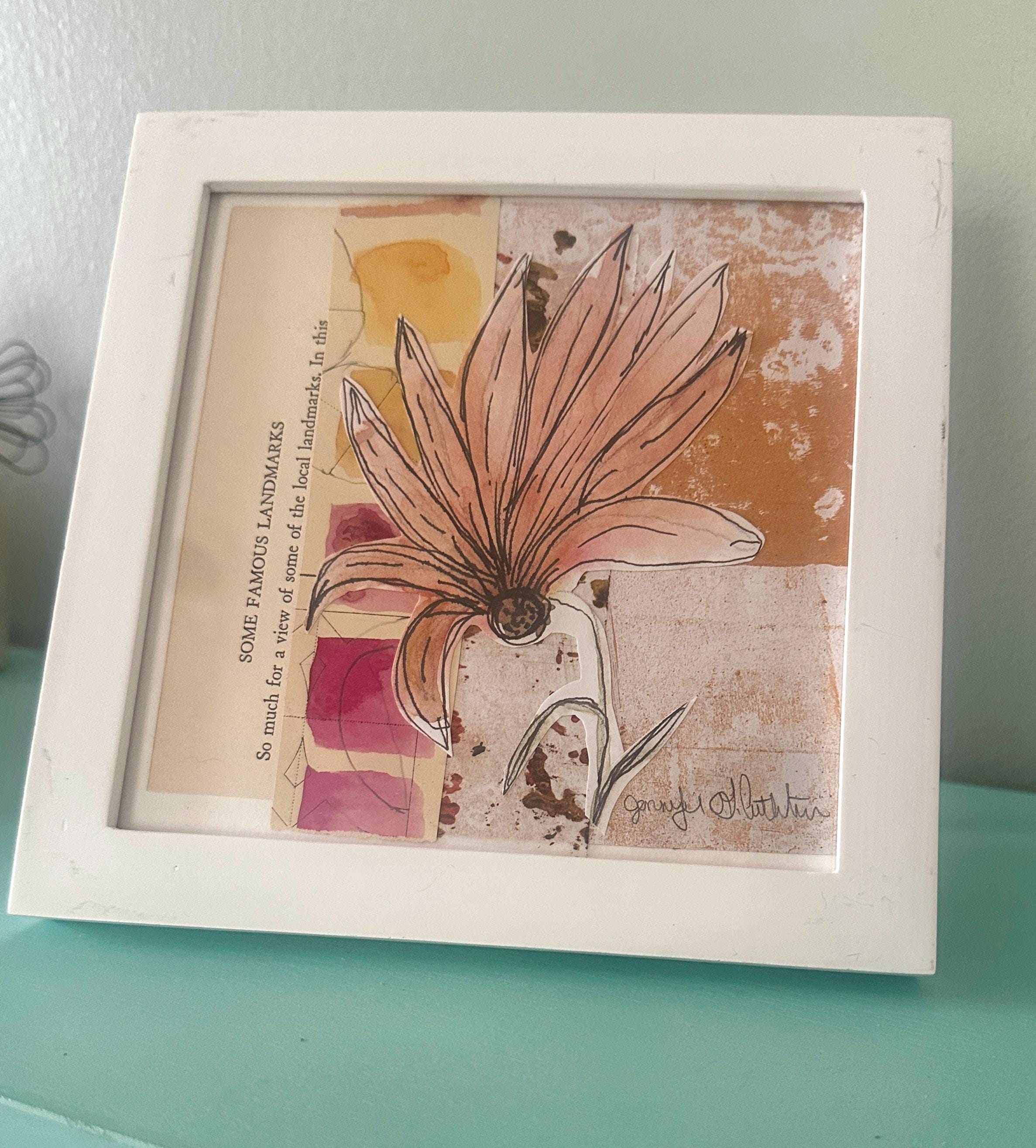 Framed Mixed Media Collage: Blooming Landscape