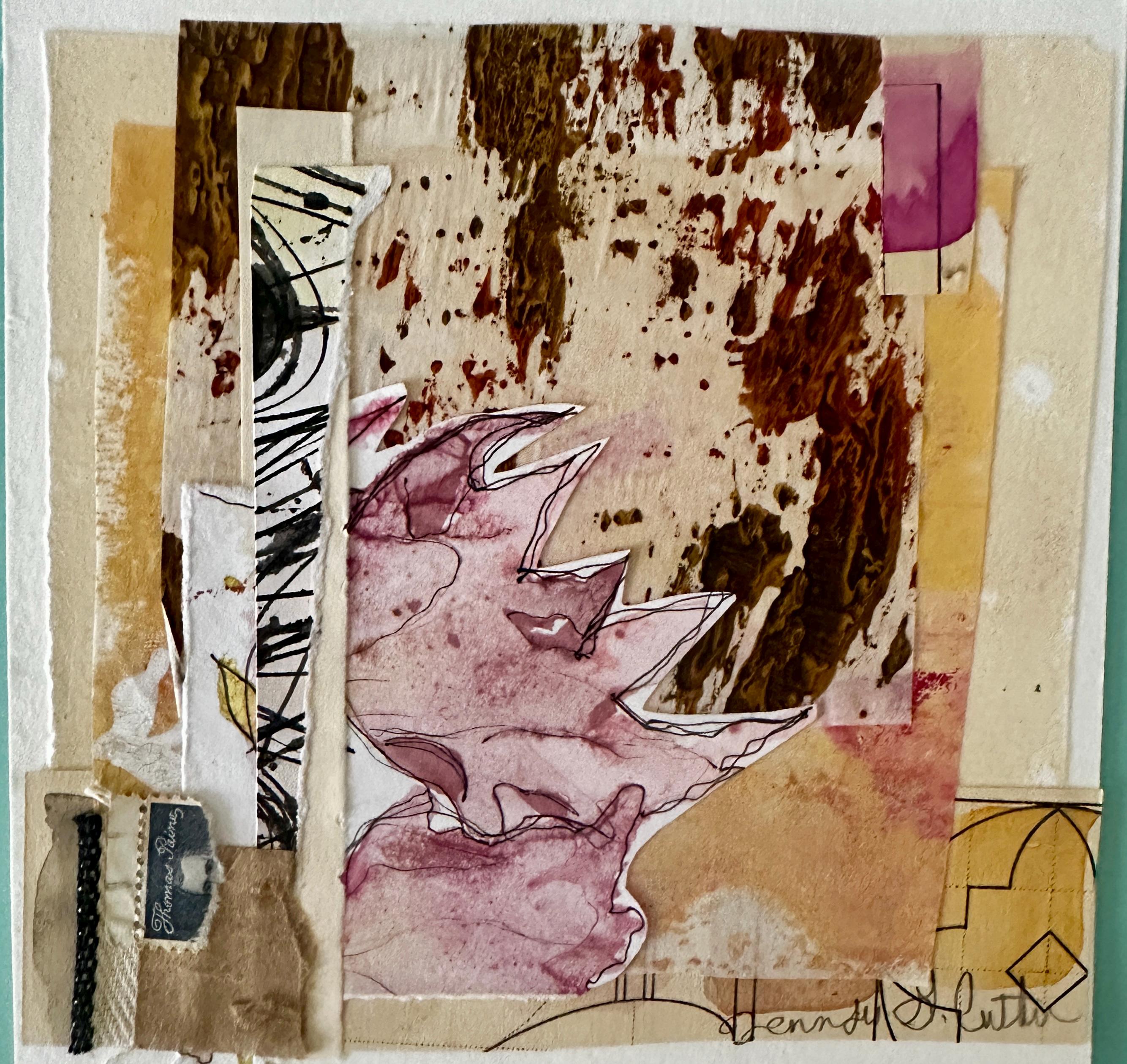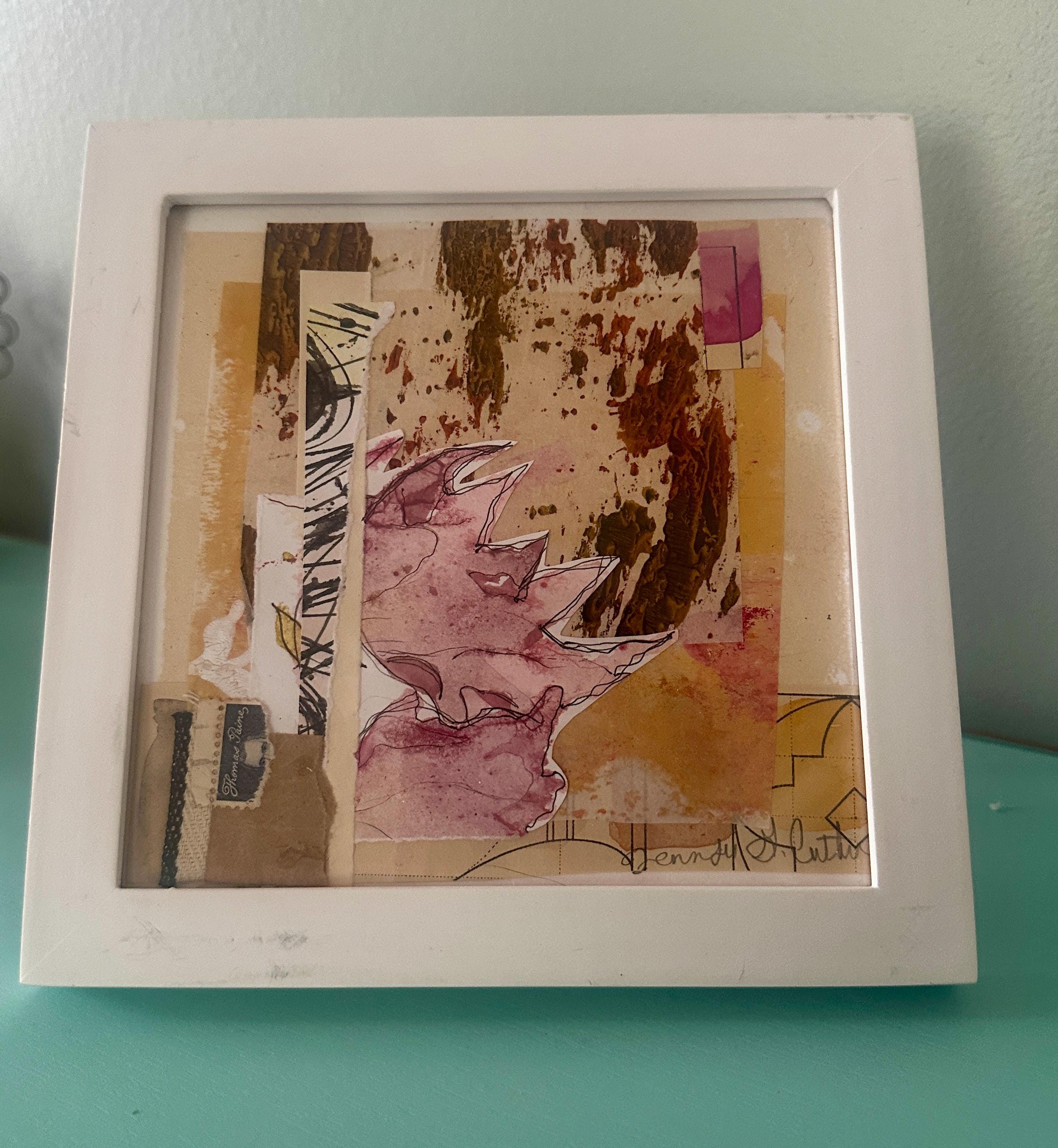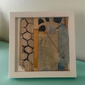 Original framed mixed media collage on watercolor paper featuring hand painted and vintage papers. One of a kind offering. Great for gifting or for you.